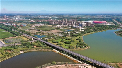 宁夏青铜峡位于黄河上游,穿境而过的黄河与周边景观相映,秀丽壮美。这是水系环绕的青铜峡市。新华社记者 王鹏 摄