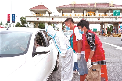 伊通满族自治县永宁街道(党工委)组织大学生党员志愿者到高速路口防疫卡点协助工作人员进行扫码和测温。