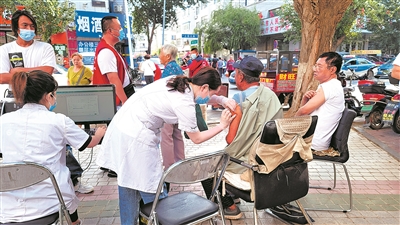 为筑起防疫屏障,日前,铁西区卫健局开通了新冠疫苗流动接种车,医务人员每天早上7点便开始驱车来到早市、步行街等地为群众注射疫苗,此举受到群众的广泛好评。