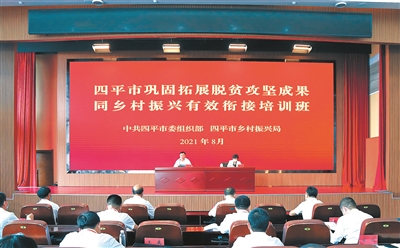 本报讯(记者 张继红)8月18日,四平市巩固拓展脱贫攻坚成果同乡村振兴有效衔接培训班在梨树黑土地干部学院开班授课。市委书记郭灵计出席并作开班动员讲话。他强调,要全面贯彻落实习近平总书记关于巩固拓展脱贫攻坚成果重要讲话重要指示精神,严格落实“四个不摘”要求,强化巩固拓展脱贫攻坚成果的责任落实、政策落实、工作落实,更新思路、提高本领,凝心聚力、真抓实干,持续巩固脱贫攻坚成果,全面推进乡村振兴。