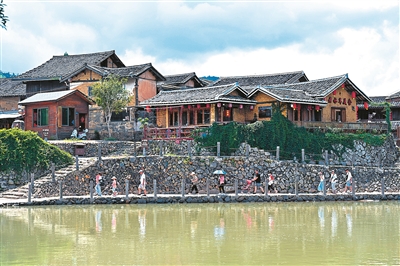 福建省漳州市南靖县是典型的山区县,世界文化遗产福建土楼散落在该县的山村之间。近年来,南靖县依托土楼,守好生态资源,加大投入改善村一级基础设施,提升村容村貌,发展特色民宿等乡村产业,吸引了一批年轻人到乡村创业,带动当地村民增收,在守好土楼乡愁、护好青山绿水的同时实现乡村振兴。8月17日,游客在福建省漳州市南靖县书洋镇官洋村附近的云水谣景区游览