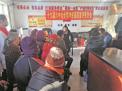 日前,铁东区组织宣讲员到石河村新时代文明实践站,与党员群众围坐在一起共同学习,以互动交流的形式,将党的十九届六中全会精神传递到百姓心坎上。