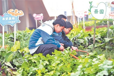近年来,位于湖南省长沙市望城区的周南望城学校积极开展中小学生劳动教育,在6层楼的楼顶露台修建“屋顶农场”作为学生的劳动教育基地。“双减”后的首个寒假,“屋顶农场”又成为学生们的假期劳动乐园,让学生们体验劳动的乐趣。学生在长沙周南望城学校的“屋顶农场”除草。