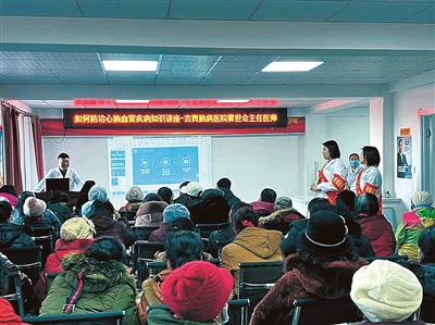 为了采取有效措施预防心脑血管病,近日,平东卫生服务中心邀请了四平市吉奥脑病医院霍世会主任医师向60多位社区老年人讲解了冬天气温突然下降和北方干燥的气候会容易使血管收缩、血黏度增高,引发心脑血管病的相关知识。并提醒老年人不要过早起床锻炼,避免冷空气刺激血管收缩,增加心血管病发作的风险。本报通讯员 杨伟 摄