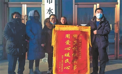 近日,双辽市鑫淼征收区域回迁至中盛达小区业主代表将一面写着“用真情做实事,用爱心暖民心”的锦旗送到双辽市城市管理行政执法局赵清林的手中,对城市管理行政执法局为民办实事表示衷心的感谢。