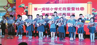 为丰富学生寒假生活,在践行“双减”的第一个寒假,市第一实验小学校组织学校尤克里里社团学生积极参加寒假社团活动。社团学生们在平时训练基础上,充分利用寒假时间再练基本功,并积极参加展演活动,在歌声与琴声的陪伴下,同学们的寒假生活过得充实快乐。