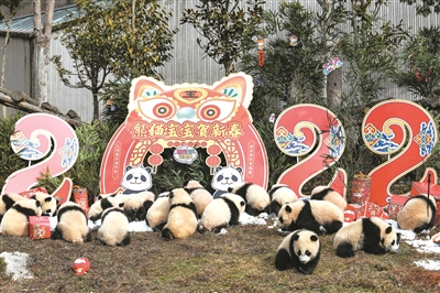 在新春佳节即将到来之际,中国大熊猫保护研究中心20只“2021级”熊猫宝宝亮相卧龙神树坪基地,向全国人民送上新春祝福。这是在中国大熊猫保护研究中心卧龙神树坪基地拍摄的熊猫宝宝。