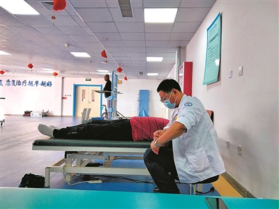 医院成立两年多来,康复中心凭借全面且多样的康复仪器和专业的康复按摩师成为了不少康复患者的选择。在康复中心器械室,康复患者在医生的指导下或者托举、或尝试站立,大家还相互加油鼓劲儿,期待着早日能像正常人一样走路、吃饭、站立……市民王先生因脑出血留下后遗症,走路有些跛。在上级医院做完手术后,医生建议做康复训练,听家里亲戚说在这家医院住院,康复器械免费用,还有专业的康复医疗师,就抱着试试看的态度来了。他的妻子王女士说,“现在我老伴每天按照医嘱做训练,还有李晓杉医生定时给做康复按摩,这让原本郁郁寡欢的他近来有了不少笑意,对未来的生活也充满了信心。”