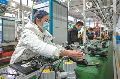 春节假期过后,全国各地众多工厂企业铆足“虎劲”,积极复工复产,力争“开门红”。2月9日,工人在浙江省金华市金磐开发区某公司生产线上赶制一批出口欧美的订单产品。