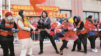 欢歌笑语不断,体育活动也不可或缺,籍雅琴组织人员将拔河的绳子取了出来,高声喊道:“盲人需要欢乐,也不能少了锻炼,下面进行拔河比赛。”听到她的号召,场上不分男女老少,都拽上了绳子,拔河的绳子两端逐渐分为两支队伍,他们中有全盲的年逾古稀的老人,有尚在学龄的幼童,每个人都铆足了劲,跃跃欲试。籍雅琴作为裁判站在中间,只听她一声令下,绳子被迅速拉直……霎时间,叫好声、加油声响个不停,拔河将整个活动推向高潮。现场气氛热烈又融洽,无论输赢,大家都笑成一片,每个人都意犹未尽,脸上洋溢着幸福的笑容。