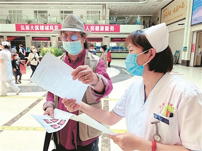 在第35个“世界无烟日”当天,市中心人民医院胸外科在门诊大厅开展“烟草威胁环境 控烟还您健康”活动,提高人民群众对烟草危害的认识,引导广大群众自觉控烟,提升健康水平。本报通讯员 林琳 摄