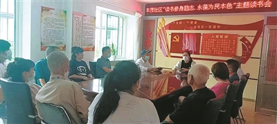 本报讯(全媒体记者 刘莉)为进一步深化社区工作人员、辖区退休党员对党的认识,提升青年党员的党性修养,增强党员为人民服务的积极性,日前,铁西区丰茂社区开展了以“读书修身励志,永葆为民本色”为主题的读书会。