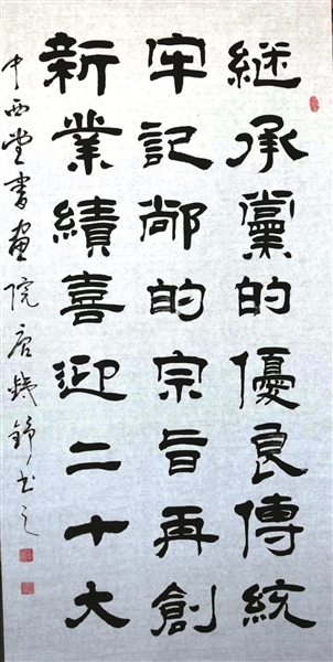 莫把丹青等闲看,无声诗里颂千秋。为庆祝建党101周年,传承红色基因,展现双辽人民奋斗新征程和积极向上的精神风貌,双辽市老年书画研究会的爱好者,纷纷拿起笔来,满怀激情,挥毫泼墨,以书画作品讴歌党的光辉历程和丰功伟绩。每一件书画作品都饱含书画创作者对党的无比热爱,诠释着永远跟党走的坚定信念。