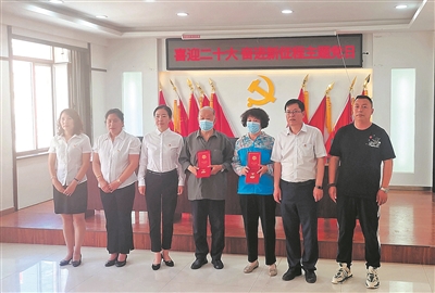 为更好地提升基层党组织的号召力、凝聚力和战斗力,使广大党员干部以更加饱满的热情迎接党的二十大胜利召开,日前,铁西区地直街西园社区开展了主题党日活动,全体党员重温了入党誓词,并为在党50年的老党员代表颁发了“光荣在党50年”纪念章。
