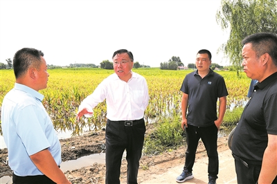 郭灵计强调,要切实将防汛排涝工作摆在当前突出位置,始终绷紧防大汛、抢大险、救大灾这根弦,坚决克服侥幸心理和麻痹思想,抓住有限时间、克服一切困难、想尽一切办法、穷尽一切措施,确保防汛排涝工作万无一失。要坚持问题导向,立足农田排涝这一当前重点问题,抓紧疏通沟渠,打通农田排水“毛细血管”,切实用最短时间将农田损失降到最低。要积极担当作为,坚持分级负责,既要做到党政主管、部门协作,也要明确职责分工、落实到人,确保将统一调度、科学应对、应急处置贯穿防汛全过程。要全面统筹推进,结合村屯实际制定系统防汛排涝方案,开展乡村排水设施整治提升行动,完善排田边沟、路边沟、村边沟等排水系统,坚决守住安全底线,提高农村防汛抗旱综合能力。要扎实做好农业保险理赔工作,最大限度降低灾害损失,切实维护好群众利益。