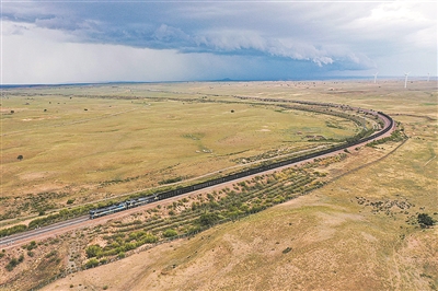 随着夏季用电用煤高峰的到来,中国铁路呼和浩特局集团有限公司锡林浩特车务段发挥铁路大运量优势,全力确保电煤运输畅通。7月12日,一列满载煤炭的火车驶过锡林郭勒草原。