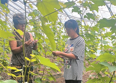 在铁东区人社局的协助以及叶赫镇政府的支持下,合作社带领村民发展特色种植,经过几年的摸索,合作社从2020年起全面种葡萄。“开始我们种了草莓、黄瓜、西红柿,但经过实际操作发现,种植葡萄收益较高。”栗志霞说,为尽快带领村民致富,她决定转型种葡萄。为了种好葡萄,她东奔西走找老师、学技术、挑品种、总结经验,如今越来越多的村民加入进来,不仅解决了村里剩余劳动力就业问题,还增加了村民收入。