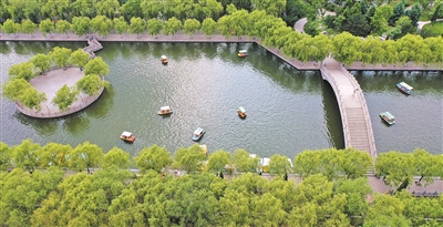 夏日炎炎,绿树成荫,红嘴天鹅湖碧波荡漾。 通讯员 李坤 摄