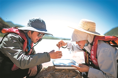 2022年江源综合科考由长江水利委员会长江科学院牵头组织,联合青海省水利厅、长江技术经济学会及长江文明馆等单位对长江正源沱沱河、南源当曲、北源楚玛尔河和澜沧江源区的水资源、水生态环境等开展科学考察,考察内容包括冰川、河流水文、泥沙、河道河势、水环境、水生态、水资源、水土流失、冻土、地形地貌等。长江科学院科考队员李鲁丹(右)与刘晗在澜沧江源区