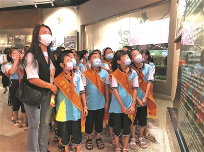 7月23日,市第二实验小学校五年二班学生在班主任老师带领下,来到四平战役纪念馆开展了暑期寻访实践活动,通过参观感受红色精神,接受爱国主义教育熏陶。全媒体记者 王惠 摄