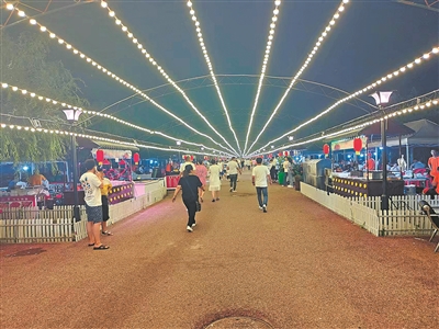 连日来,我市天气持续晴朗,市民纷纷走出家门纳凉,这是铁东区四平植物园夜市场景。