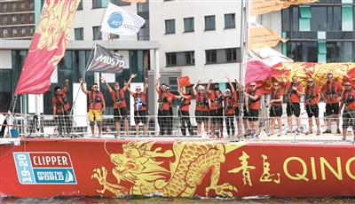 7月30日,总冠军青岛号在伦敦皇家码头参加巡游活动。当日,11支经历了4万余海里环球航行的克利伯环球帆船赛船队回归始发点伦敦。此前一天,本次比赛的最后一段赛程因天气原因提前结束,以第三名成绩完赛、来自中国的青岛号最终凭借五次单赛程冠军、总分145分的表现收获总冠军。 新华社记者 李颖 摄