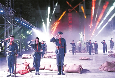 8月1日,演员在南昌八一起义纪念馆演出沉浸式实景剧《那年八一》。 8月1日,在中国人民解放军建军95周年之际,革命旧址沉浸式实景剧《那年八一》在南昌八一起义纪念馆上演。 新华社记者 万象 摄