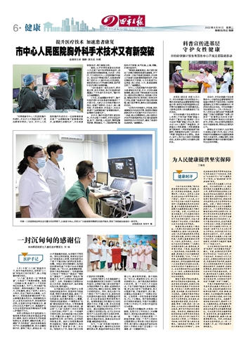 市中心人民医院胸外科手术技术又有新突破