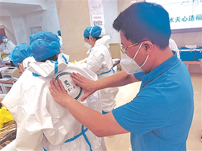 出征前,马春彪董事长忙前忙后,亲自为医护人员粘贴标识,检查防护服穿戴是否符合要求,携带采集医疗物品是否齐全,入户采集信息是否准确等。他与采集人员亲切交谈,给年轻医护人员鼓劲加油,亲力亲为的举动,让医护人员信心满满,干劲倍增。