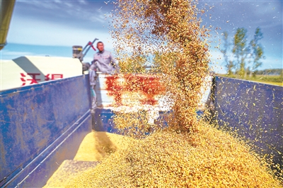 近年来,吉林省加快推进农业供给侧结构性改革,通过树品牌、建联盟、订标准、搭平台、拓渠道,实施吉林大米品牌建设工程。如今,吉林大米已经成为吉林农业“第一品牌”。九月,吉林省各水稻主产区陆续拉开秋收序幕。9月20日,在吉林省长春市九台区龙嘉农乐种植家庭农场,农民操作农机将收获的水稻送入拖拉机。