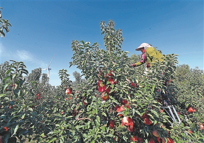 近日,在辽宁省沈阳市康平县方家屯镇,康平红薯、苹果、小米等特色地标农产品丰收在望,农民在田间果园采摘劳作。据统计,康平县今年种植小米5000余亩、寒富苹果3.5万亩、红薯近2万亩,均喜获丰收。9月21日,在康平县方家屯镇小房身村,果农在果园给苹果摘袋。
