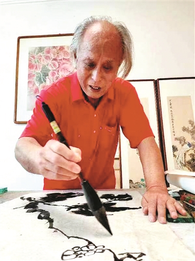 纵观陈连桂先生在绘画上取得的成就,与他一生辛劳,勤勤恳恳密切相关。近日去他家,四十多年来第一次走进他的画室,大厅里墙壁上、桌几上、地面上,到处都是他的画,他还忙着给我找早年的那些他认为最具代表性的老作品。一个年近80岁的老人,满头灰白、满地沧桑,展开放下,弯腰俯拾。看得我肃然起敬!行行出状元,人人有艰辛。这老先生大概天天都在画,一辈子生活在笔墨纸砚之中,他不觉得有累有苦,艺术造诣牵着他度过了一个个人生醉美的书画春秋。