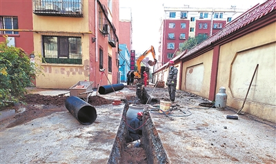 10月13日,铁东区曙光社区自来水小区内城市下水二次改造工作紧张有序进行。 全媒体记者