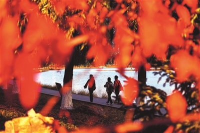 金秋时节,长春市色彩斑斓,秋景如画,10月19日,市民行走在长春市友谊公园内。新华社记者 许畅 摄
