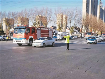 演练过程中,大队值勤警力接到指令后,第一时间向指挥中心进行汇报,并立即对该路段进行临时交通管制,对过往车辆进行分流,确保消防车辆、急救车辆可以快速顺畅通过。