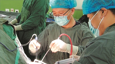面对这样一个病情危重的孕妇,市中心人民医院立即启动应急预案,产科紧急召集专家会诊,神经外一科李晓东主任参与了会诊,在了解患者的病情后,他立即组织医务人员积极抢救。根据类似病例的报道,胎儿的死亡率极高,患者已孕30周,尽量保全胎儿。经过慎重的考虑,李晓东决定为患者实施微创脑内血肿清除术及颅内压探极植入术,以最小的损伤治疗脑出血。术后第1天患者逐渐恢复意识,可配合伸舌及伸手指等简单指令性动作。