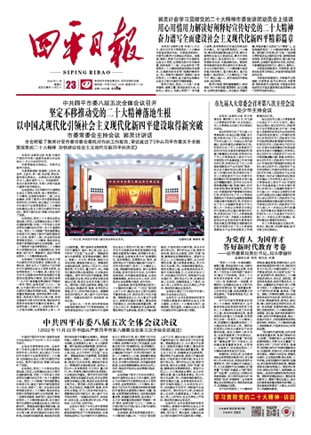 坚定不移推动党的二十大精神落地生根 以中国式现代化引领社会主义现代化新四平建设取得新突破