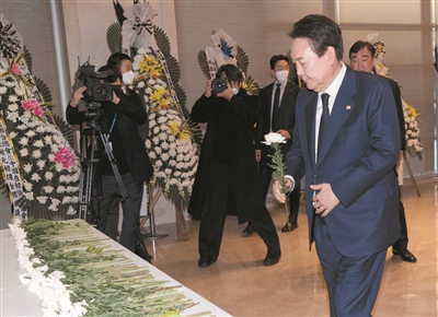12月2日,韩国总统尹锡悦在中国驻韩国大使馆吊唁江泽民同志。