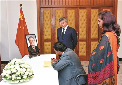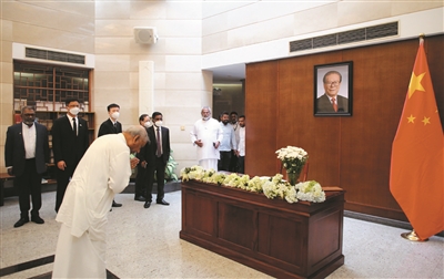 十二月二日,斯里兰卡总统维克拉马辛哈在中国驻斯里兰卡大使馆吊唁江泽民同志。
