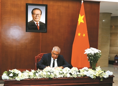 12月2日,毛里求斯总理贾格纳特在中国驻毛里求斯大使馆吊唁江泽民同志。
