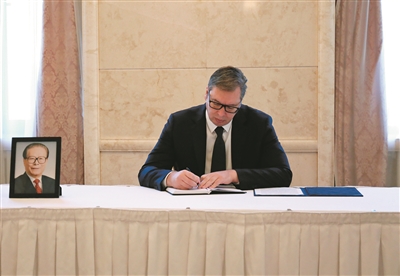 12月3日,塞尔维亚总统武契奇在中国驻塞尔维亚大使馆吊唁江泽民同志。
