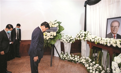 12月5日,老挝总理潘坎在中国驻老挝大使馆吊唁江泽民同志。