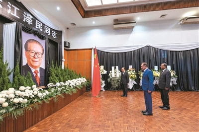12月2日,毛里求斯总统鲁蓬在中国驻毛里求斯大使馆吊唁江泽民同志。