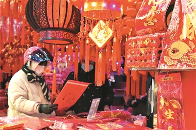 12月18日,市民在江苏省如皋市一家小商品市场选购新年饰品。