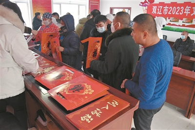 本报讯(全媒体记者 刘莉)1月13日,双辽市新时代文明实践中心与市文化馆志愿者深入卧虎镇卧虎村,联合开展“迎新春 送春联”活动,为百姓送春联、“福”字,表演文艺节目,让村民提前感受浓浓的年味。