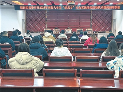 为搭建在外梨树籍学子与家乡常态化联系的实践桥梁,近日,梨树团县委召开2023年寒假大学生“返家乡”社会实践活动启动仪式暨岗前培训会,有序开展“返家乡”社会实践工作。