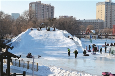 近日,我市各滑雪场、滑冰场热闹非凡,越来越多的市民纷纷走出家门,体验冰雪魅力,感受冰雪运动带来的欢乐。全媒体记者 宋莹莹 摄于南湖公园