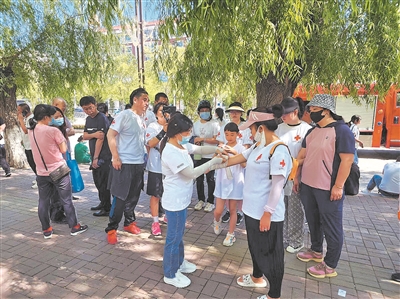 高考期间,市红十字海上虎志愿服务分队在市区各高考考点开展爱心助考志愿服务活动。