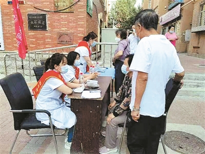 近日,为更好地服务辖区居民,提高居民群众的健康水平和对防病知识的了解,铁东区黄土坑街双汇社区开展义诊及科普活动。义诊团队为社区居民提供免费血糖、血脂、血压等检测,并为居民进行健康知识普及。 本报通讯员 薄茜文 摄