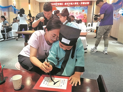 齐正衣冠、躬行礼仪、朱砂启智、落笔成人……7月15日,铁西区地直街道华宇社区的萌娃们牵着父母的手,通过寓意梦想起飞的“启智门”,走进华宇商学院,开启人生学习新阶段。2023华宇幸福汇成长计划入学礼·开蒙启智活动如期举行。